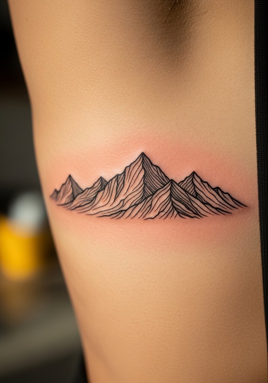 I love mountains as small scenic pieces on the ribs, but I warn friends about pain. Have snacks and breaks. Sessions can be long if you add layers. Tell the artist to build depth with heavier baseline lines and lighter background peaks. People often request equal-weight lines for a delicate look. Healed, that flattens. At one year the darker baselines keep the scene readable.