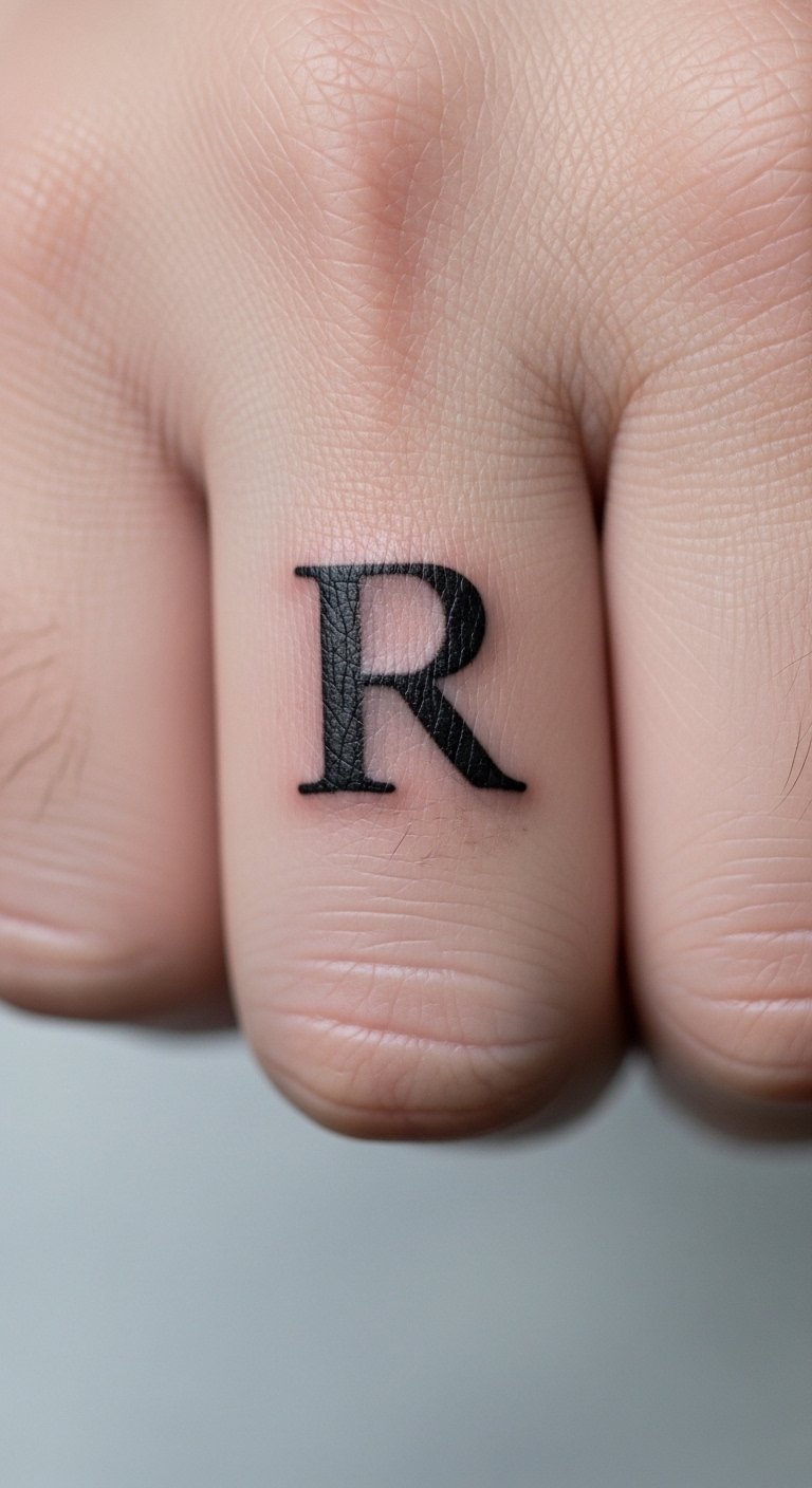 A single initial is bold yet subtle. Knuckles hold ink poorly long-term due to movement; thicker strokes hold up better. Expect faster fading and possible touch-ups. Artists recommend simpler, bolder letterforms over thin serifs for longevity. Keep sessions short.