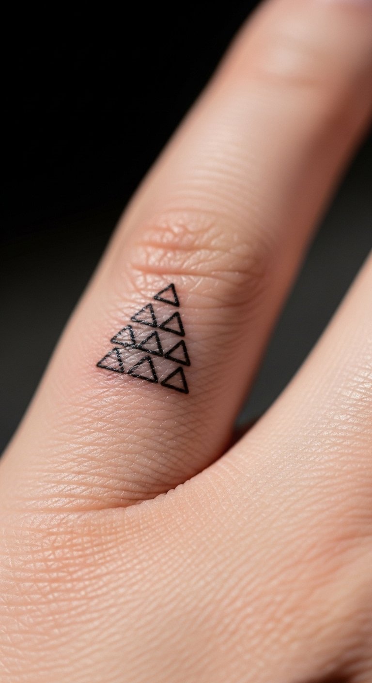Stacked triangles are minimalist and symbolic. Keep triangles slightly bolder to avoid fill-in. Artists who do fine geometric work can show healed examples.