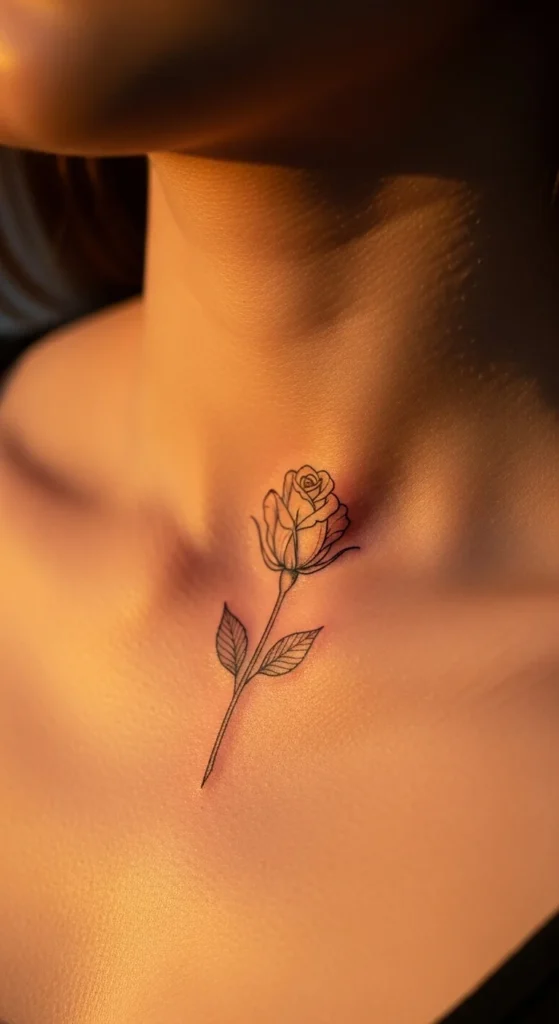 Rosebuds symbolize new beginnings. A tiny bud on the collarbone looks delicate and feminine. Keep the stem short and the petals lightly shaded for a gentle finish. You can sketch small buds on tracing paper to find the best angle before booking your session.
