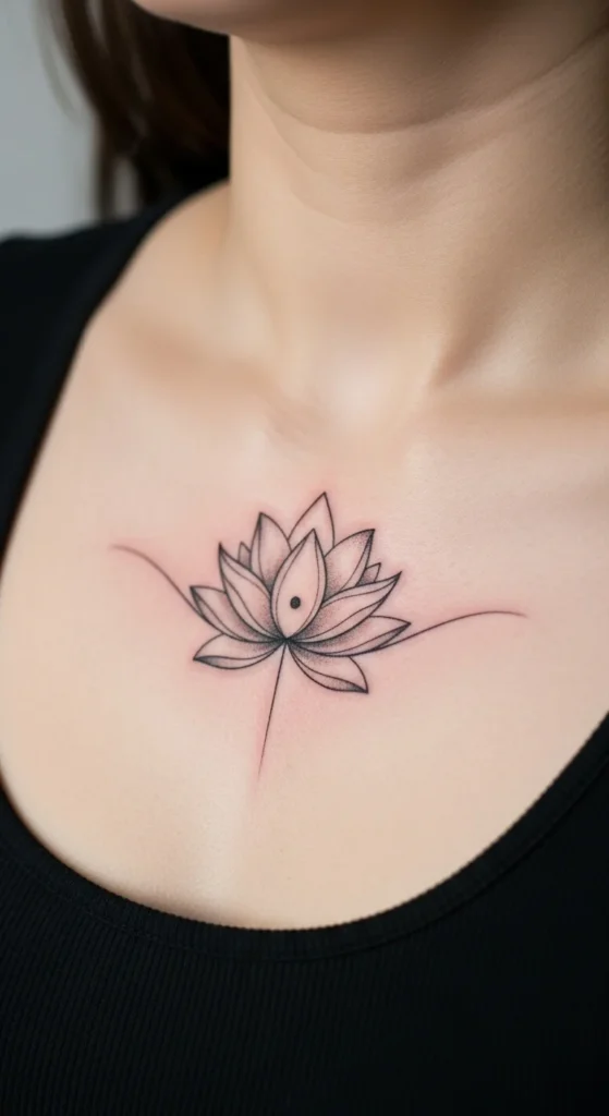 A lotus stands for resilience. A minimalist version adds softness, making it perfect for sternum or upper belly placements. Use clean lines and small petals. You can test placement by cutting a paper lotus and centering it vertically along your chest.