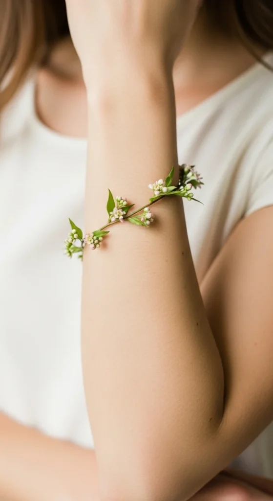 A floral bracelet feels like jewelry on the skin. Use tiny flowers spaced with thin stems for a gentle wraparound design. If you’re unsure about size, wrap a thread around your wrist and draw small dots along it to mimic placement.