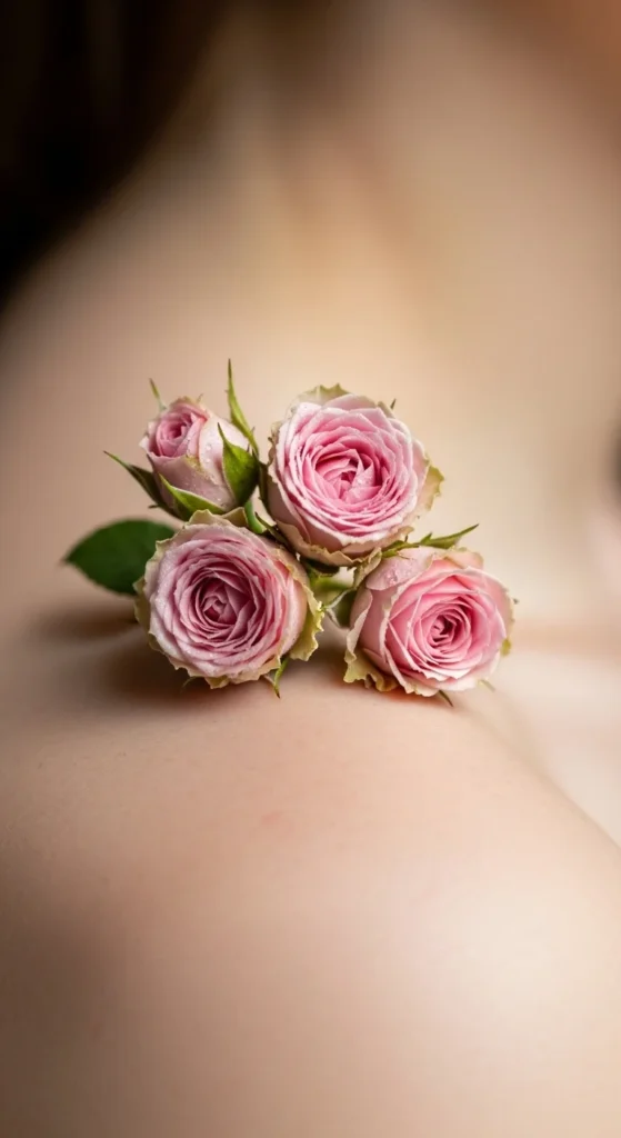 Clusters add emotion without taking much space. Three roses can represent family or key memories. Keep them tiny for a subtle finish. Tape three small rose sketches in a triangle on your shoulder to test symmetry.