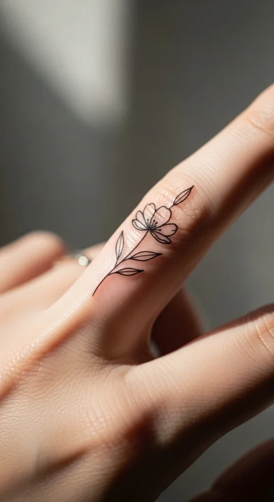 Finger florals are trending thanks to their delicate charm. Choose ultra-fine lines so the tattoo stays soft. A single flower outline on the side of a finger looks feminine and minimal. Finger tattoos fade faster, so pick a small design to refresh easily over time.