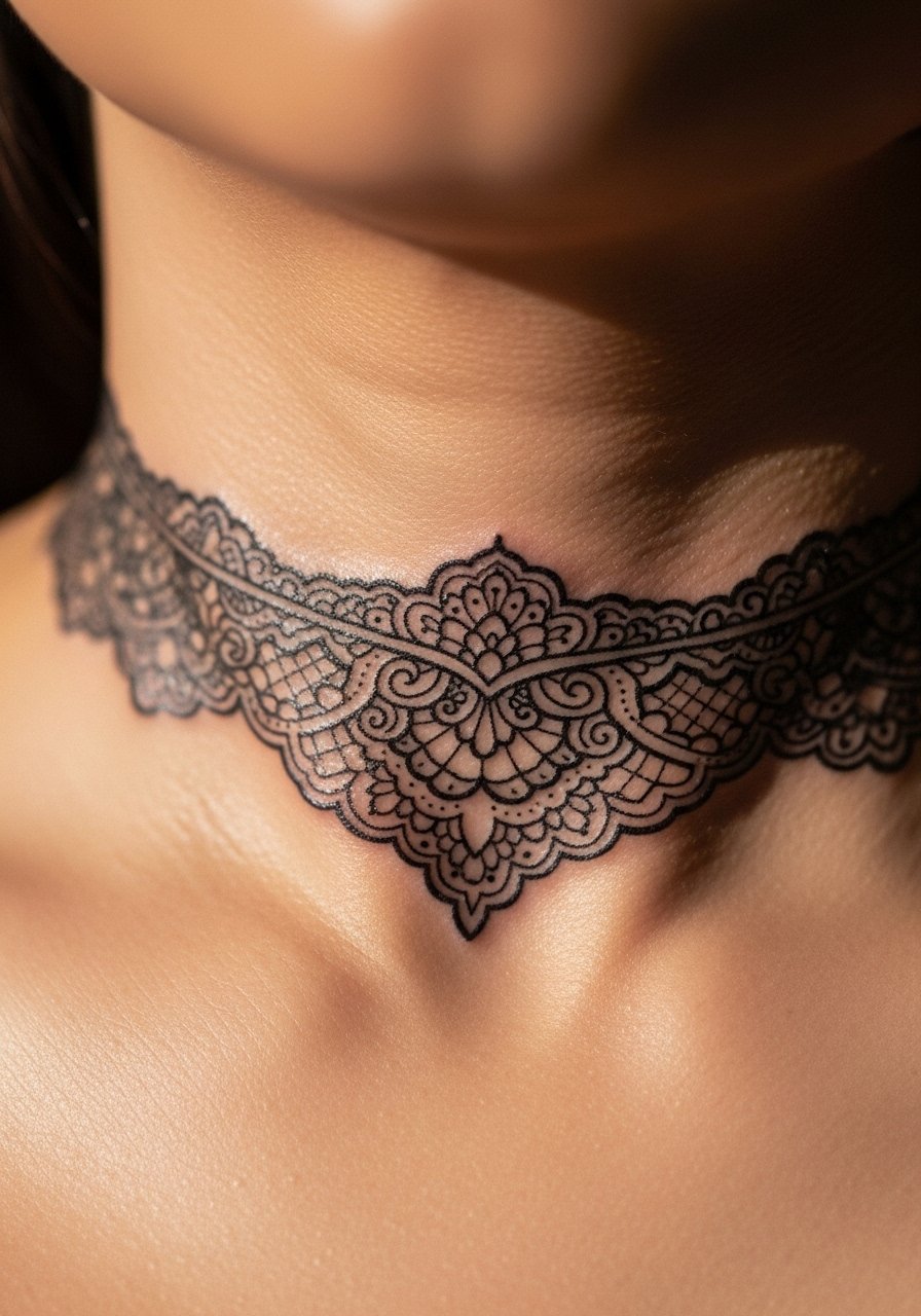 I love how a lace choker reads like jewelry and like a story. Fine line makes this feel feminine and Gothic at once. The neck keeps the piece visible, but expect higher pain and a slower initial healing due to constant movement. I’d plan for careful aftercare; Saniderm or a thin occlusive helps the first 3–5 days. Lines settle and soften with time. From what I’ve noticed, too many hairline details can blur; ask for slightly bolder secondary lines. This is a look that needs an artist comfortable with delicate negative space and consistent line weight. Healed, it reads refined—fresh it’s razor-sharp.