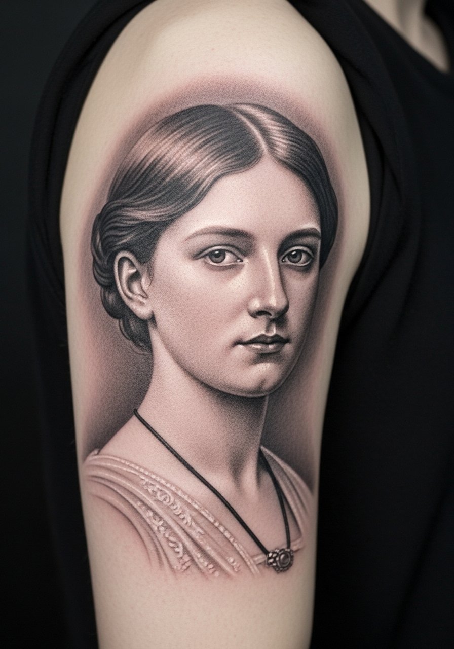 3. Micro-Realism Victorian Portrait on Upper Arm