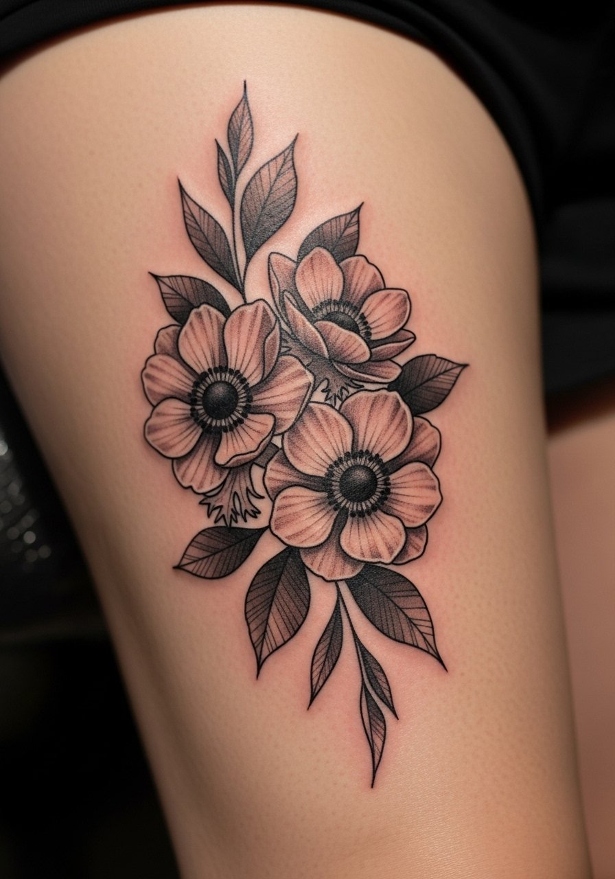 Dark botanicals are Gothic without literal skulls. Anemones, poppies, and black roses feel moody when rendered in dense blacks and negative space. Thigh panels take larger scale well and age gracefully. Expect modest discomfort and a smooth healing period. In my experience, keeping petal edges bold improves longevity. Ask for layered shading rather than many tiny stippled dots—those can blur over time.