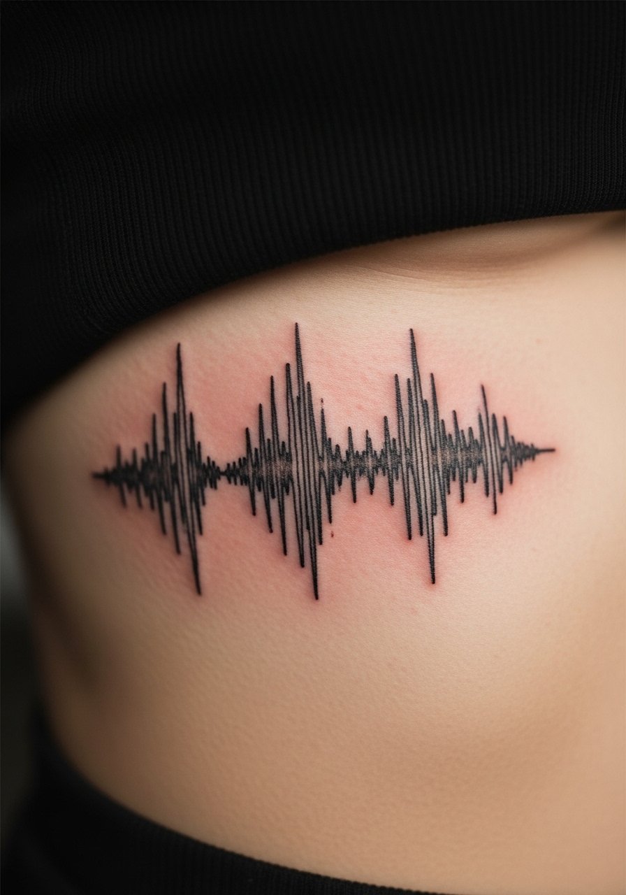 Soundwave tattoos are deeply personal and look modern. The ribcage shows them well but expect pain. Precision is key—ask your artist to use high-contrast line weight so the waveform reads after healing. I’ve seen these become conversation starters; they pair well with a tiny guitar icon.