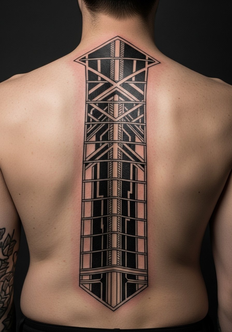 A fretboard along the spine looks dramatic and architectural. Spine tattoos are painful and need an experienced hand for symmetry. Blackwork ages well here, but tight patterns can blur—ask for slightly spaced geometry. Healing is slower over bone; expect sensitivity for a few weeks.