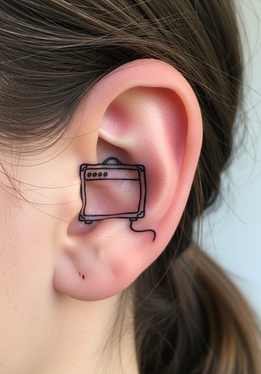 A solid black silhouette is bold and timeless. Small placements like behind the ear or at the nape are discreet but can sting more. Black ink ages best across skin tones and needs minimal touch-ups. Avoid tiny internal details; silhouettes read better healed. From my experience, this style is perfect for people who want a subtle musical nod.