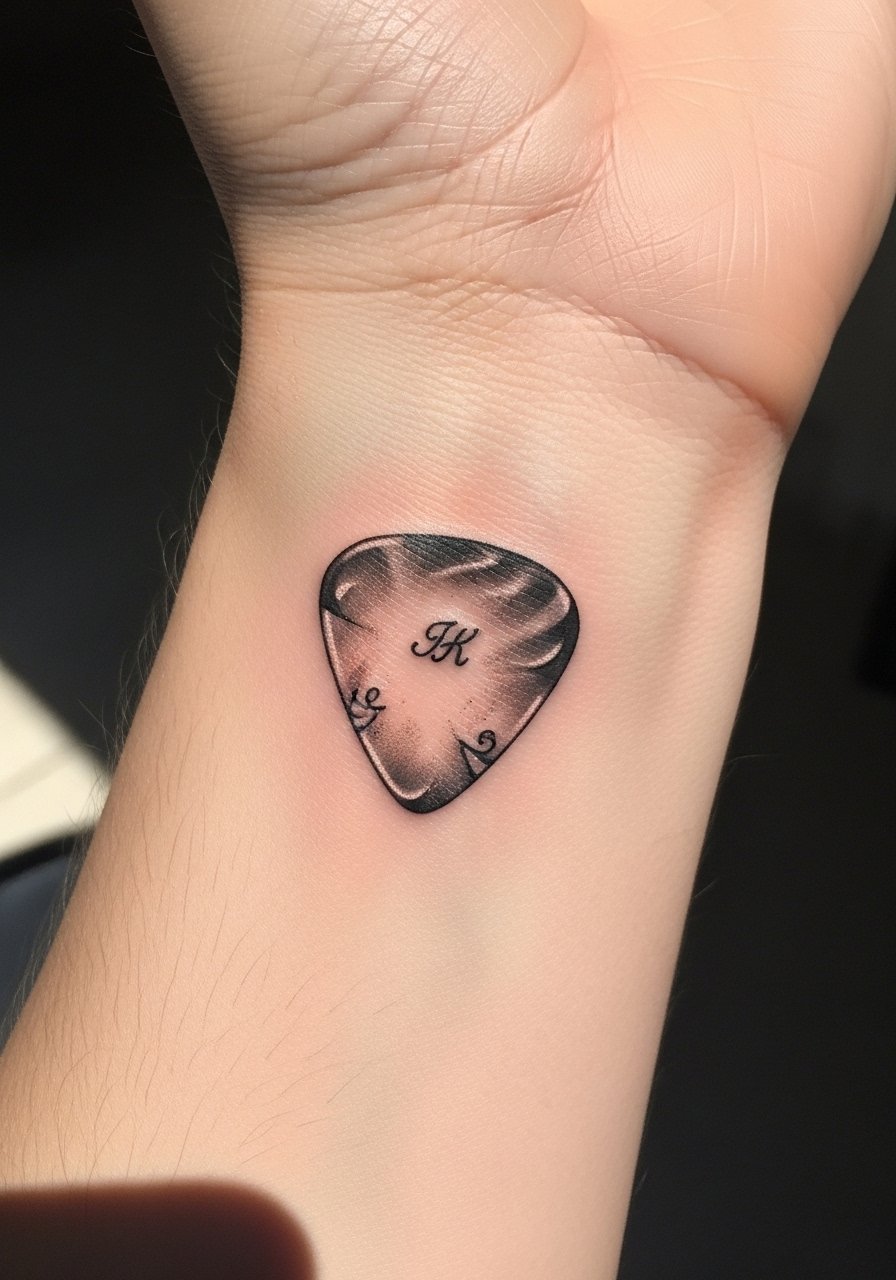 A realistic pick with initials reads like a keepsake. Wrists are sensitive and lines may soften—ask for slightly bolder shading. Healing is quick but avoid wrist flexing for a few days. I’ve seen these remain meaningful without needing touch-ups if done with care.