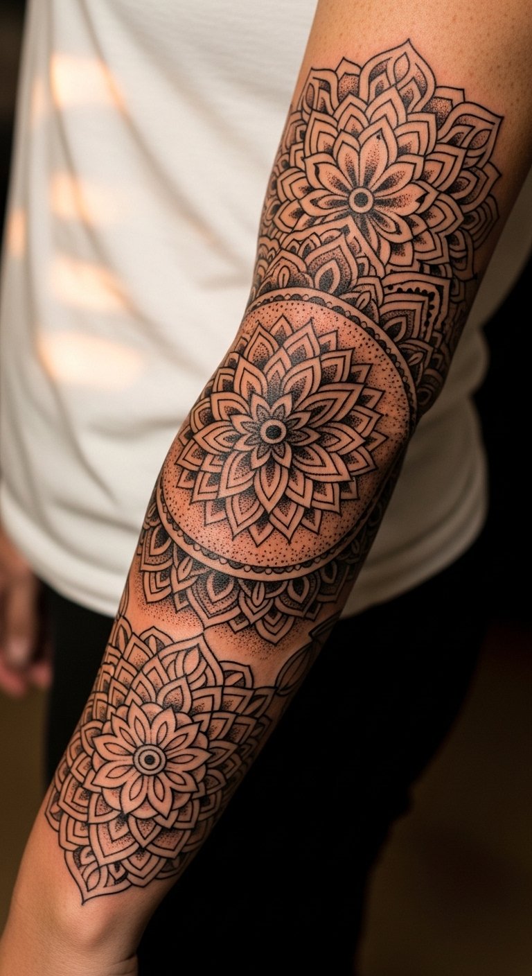 Dotwork Mandala Half Sleeve on Inner Arm