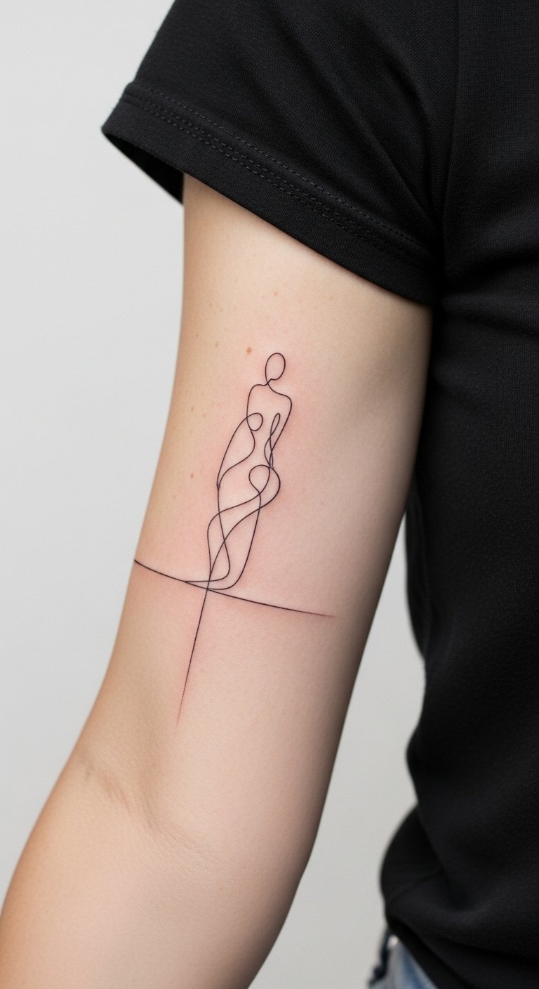 Minimalist Line Art Half Sleeve on Outer Arm