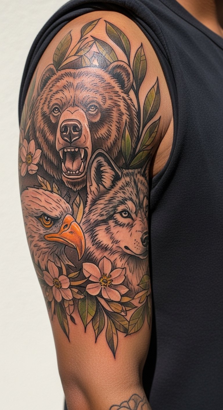 Animal Totem Half Sleeve on Outer Upper Arm