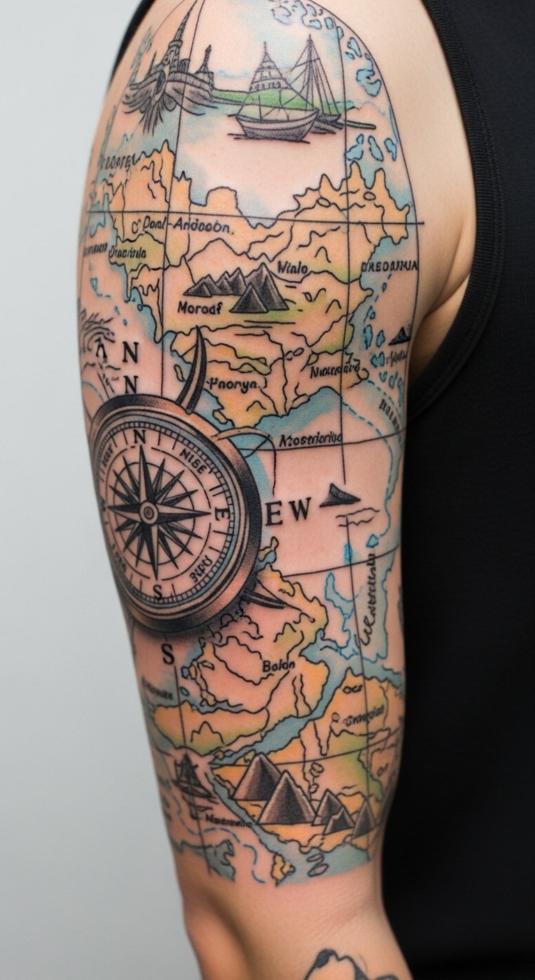 Travel Map Compass Half Sleeve on Outer Arm
