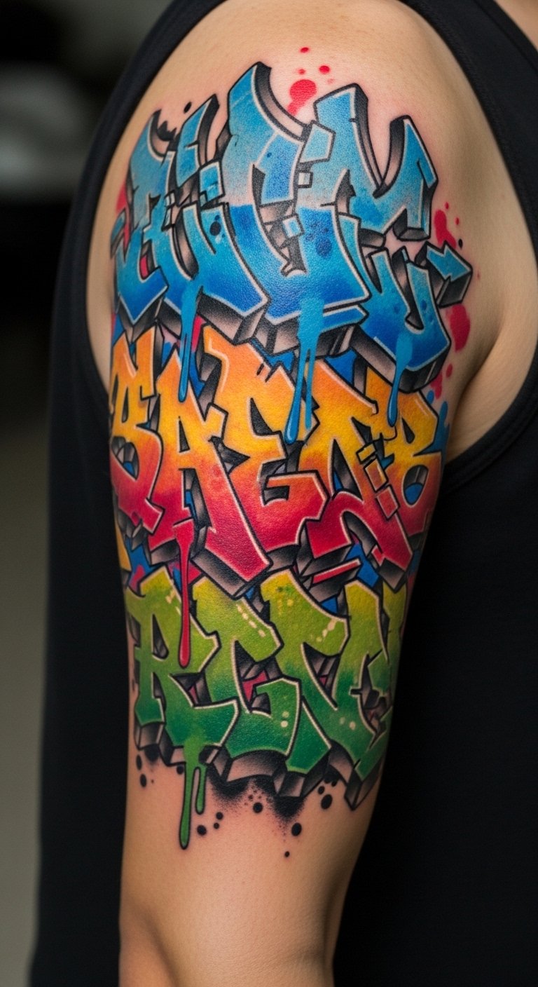 Graffiti-style sleeves are energetic and modern. Use saturated color blocks and bold outlines for longevity. Avoid tiny gradient spray dots that can fade unevenly.