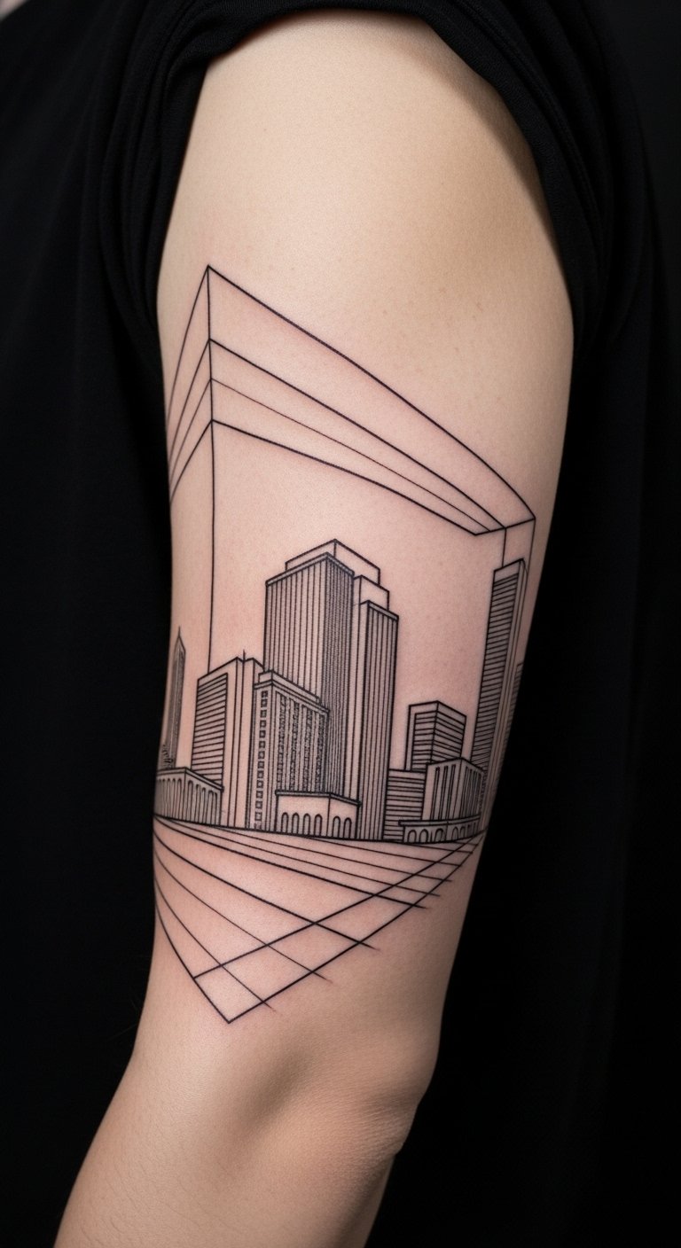 Architectural Linework Half Sleeve on Outer Arm