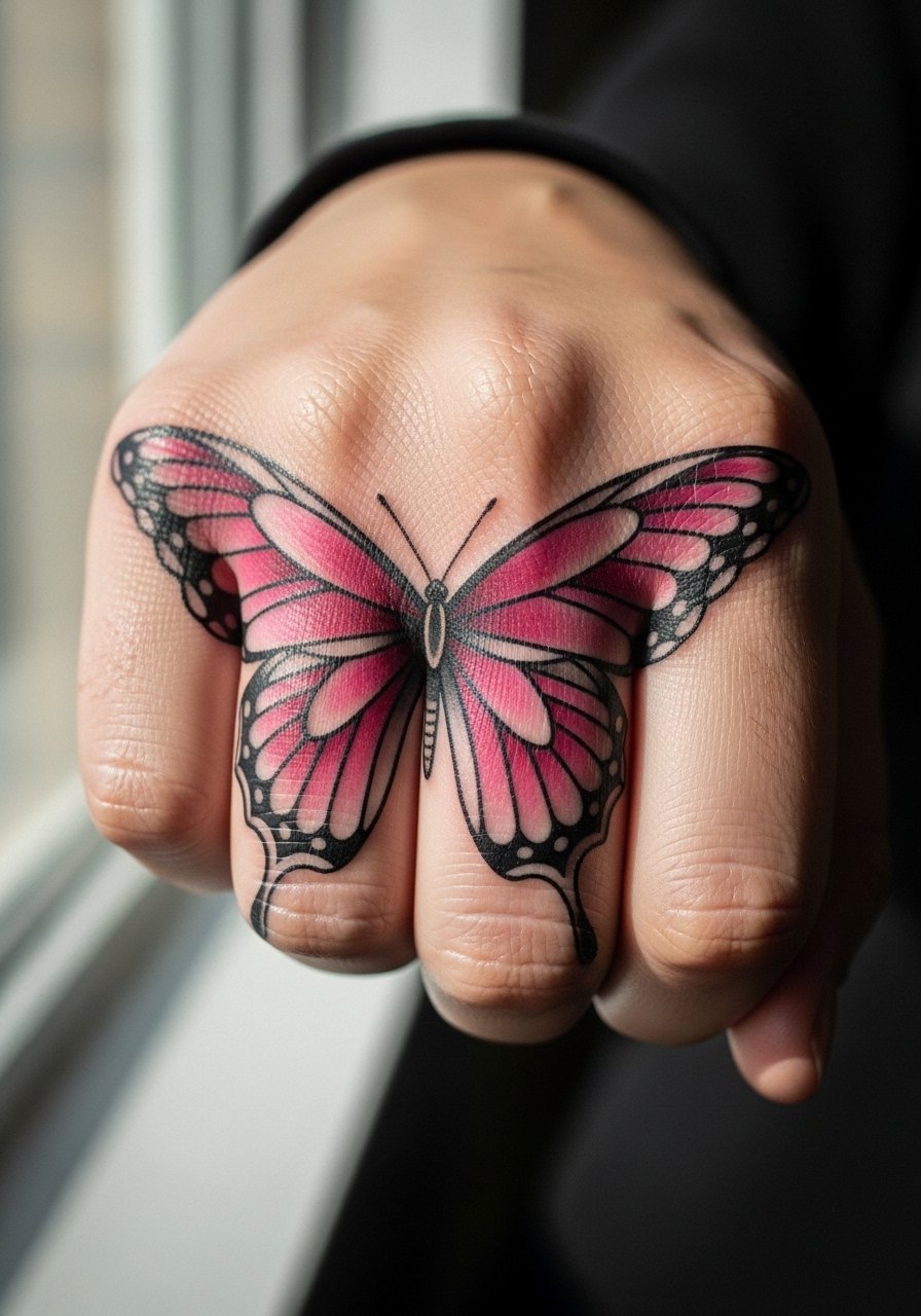 3. Pink butterfly on the knuckles
