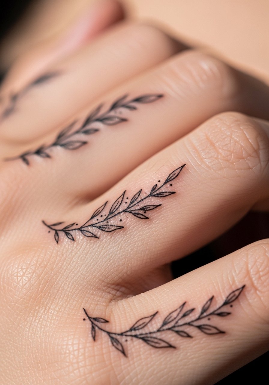 Most people pick this after they decide they want something small but visible while wearing rings. These dainty wraps are great for first-timers, but hand movement causes thin stems to soften over time. Request slightly more spacing between leaves and a modest lineweight so the design reads cleanly at six months. Sessions are short, usually under 30 minutes per finger. Expect the fastest fading among these florals at around the one-year mark if you wash hands frequently. A frequent error is requesting too-tight wrapping that compresses when you make a fist and speeds blur.