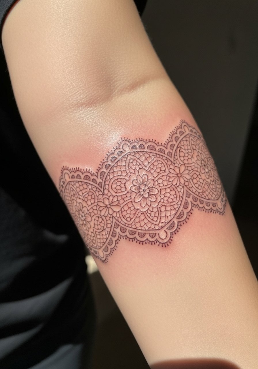 The elbow pit is a tricky area due to creasing—lace works if placed just above the fold. I’ve seen too-fine work smear across the crease; the trick is to use slightly bolder outer lines with intact inner detail. Plan for some movement during healing; avoid heavy stretching immediately after.