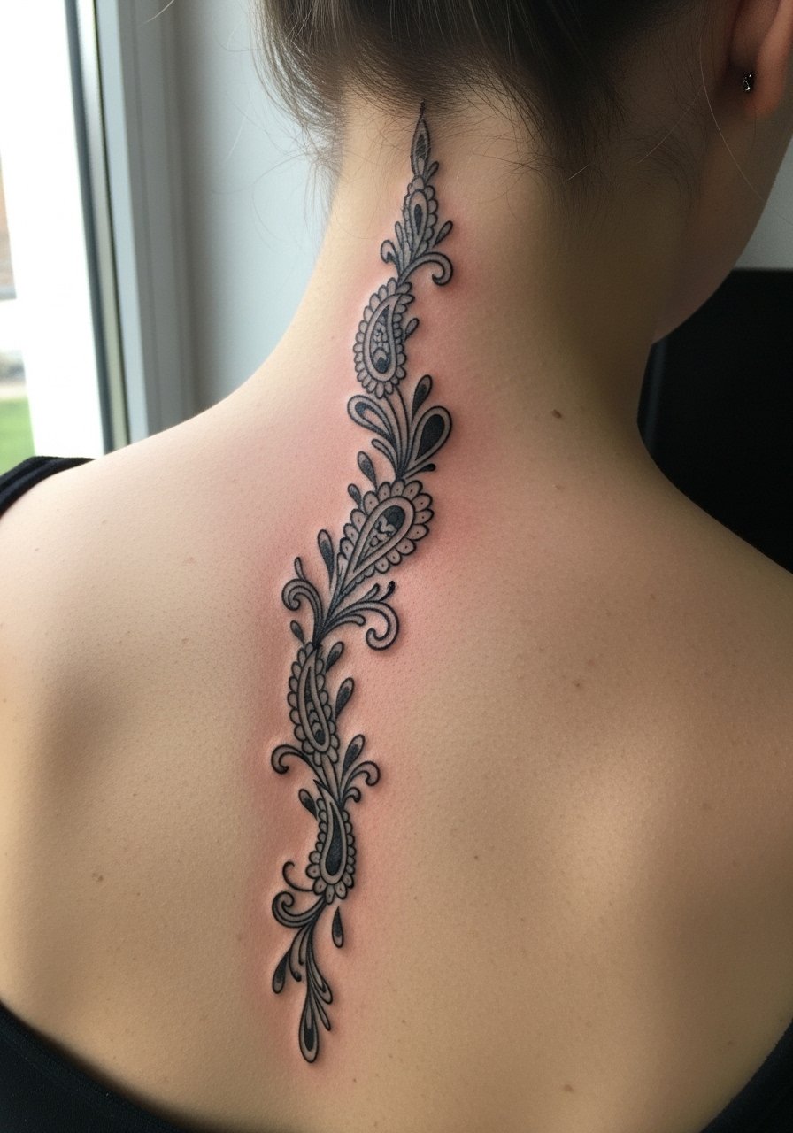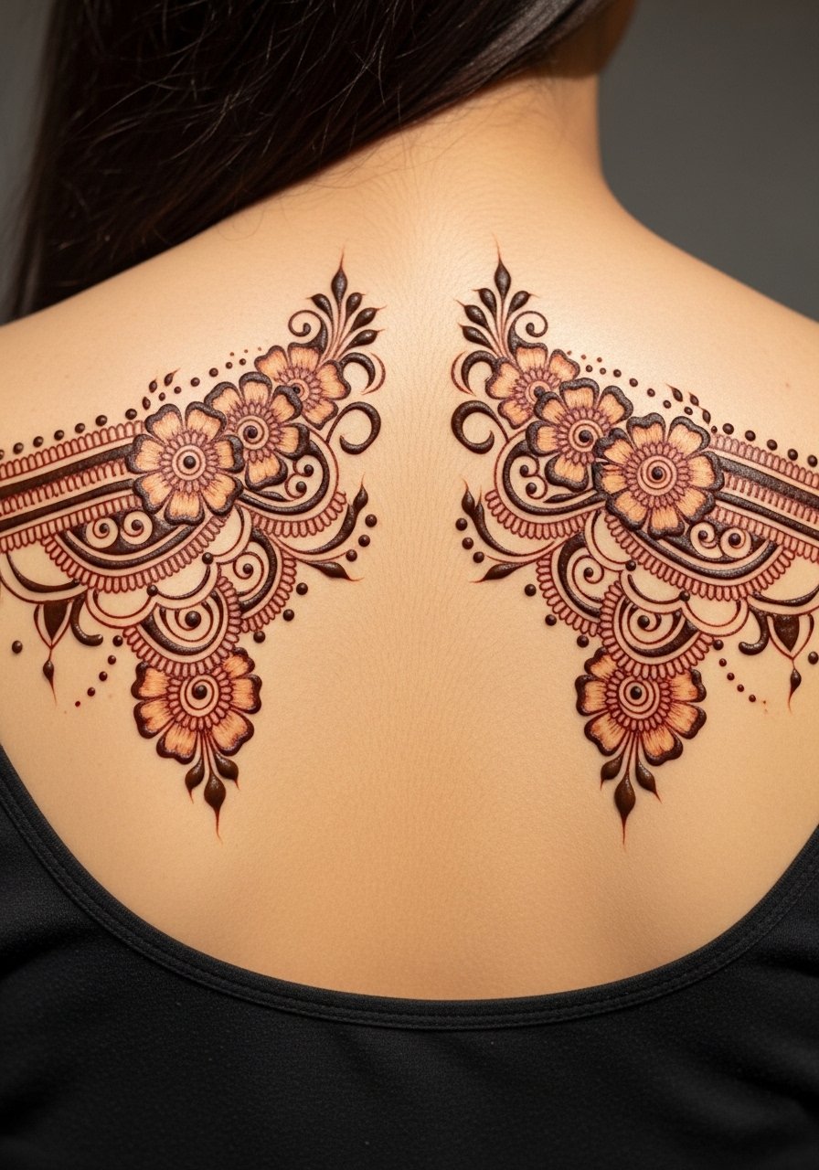 A single vine down the upper back echoes traditional henna garlands and looks graceful when hair moves. It’s low enough pain and heals cleanly. I recommend spacing elements generously—overfilling can make the vine look heavy once the skin settles. Ask for mock placement with clothing to ensure it peeks where you want it.