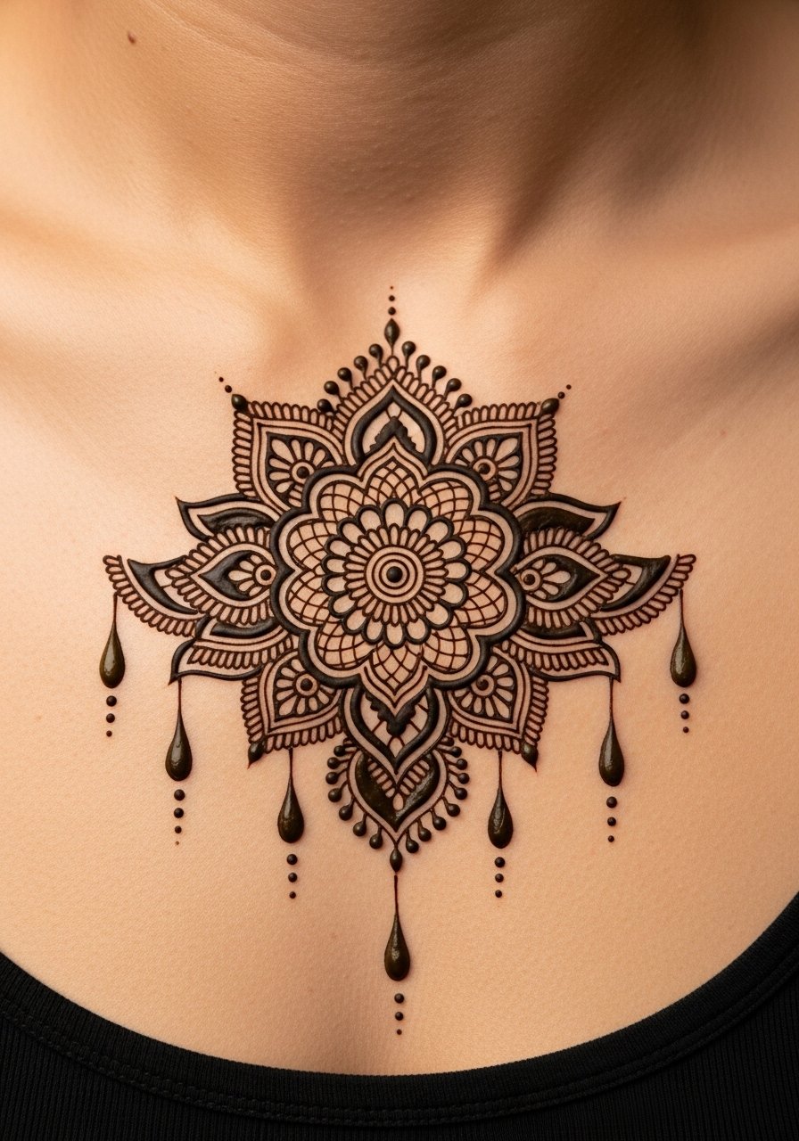 A sternum lace piece captures that bridal-henna feel but as permanent ink. It’s intimate and can be more painful because of the sternum proximity, but visually it’s worth it if you want a centerpiece. Healing requires care—avoid tight bras and friction. I’ve seen lace age well when artists use balanced line weights and avoid excessive micro-stippling that can blur.