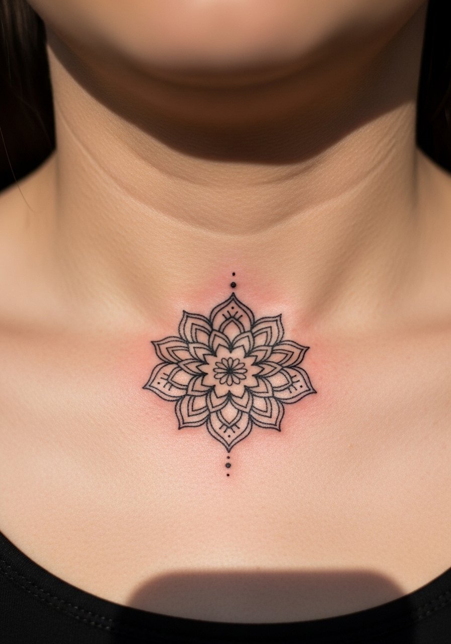 Style/Technique: Small centered mandala below the throat