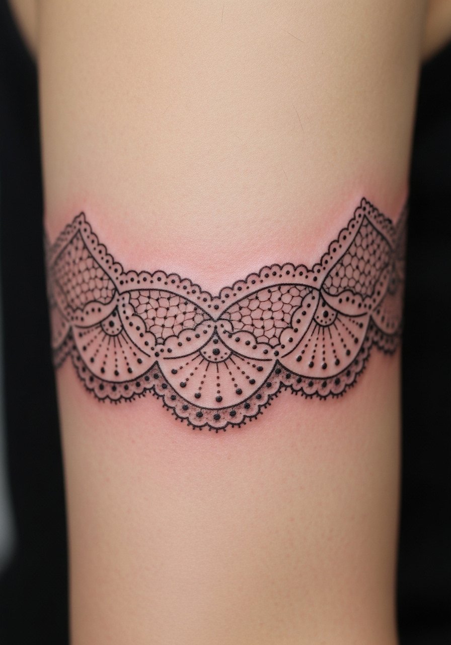 Style/Technique: Small scalloped lace that sits above the elbow crease