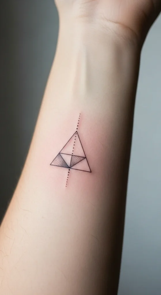 Geometric minimalist tattoos are a cheat code for longevity. Why? Because clean geometry is readable even if the edges soften slightly over time.