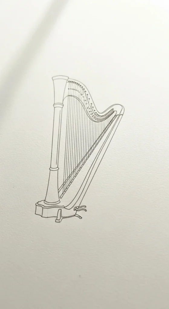 The Irish harp is a national symbol with a gentle look. A small outline fits well on the wrist or ankle. Keep only the outer frame to save time at your appointment. Draw it at home using smooth curves. If you want something even lighter, remove the internal strings and keep it purely symbolic. Try a temporary version using a fine liner to see how it complements your style.