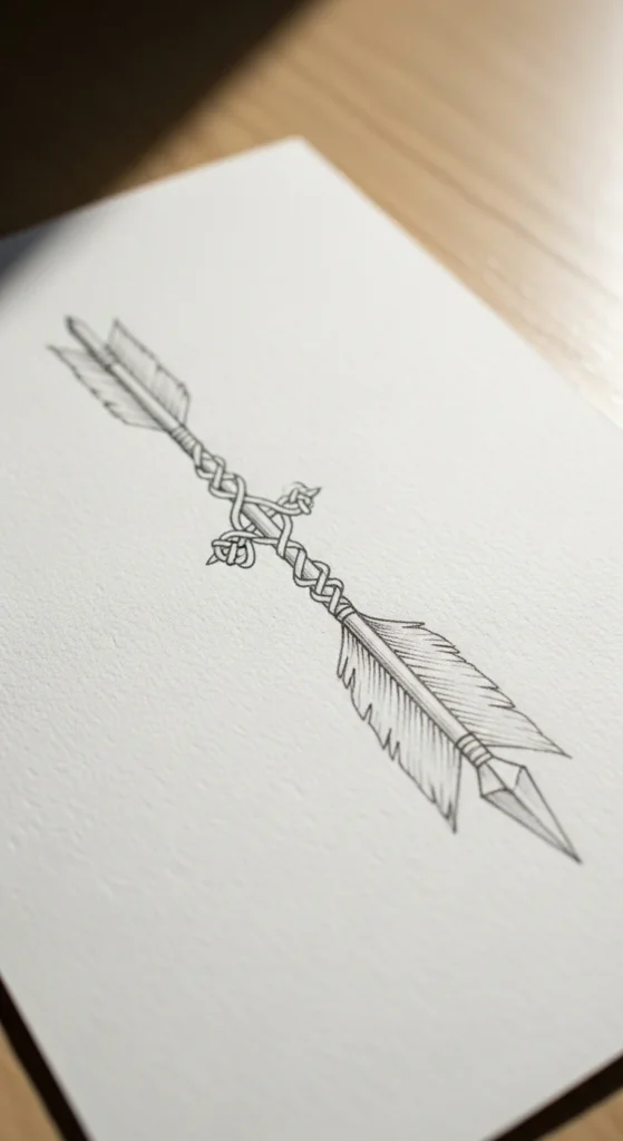 An arrow gives direction and clarity. Add one knot line near the center to bring an Irish touch. Keep the shaft straight and clean. For a trial version, draw it with a ruler and skin-safe pen on your forearm. If you want it small, reduce the feather detail to simple shapes. A thin outline helps keep your session short.