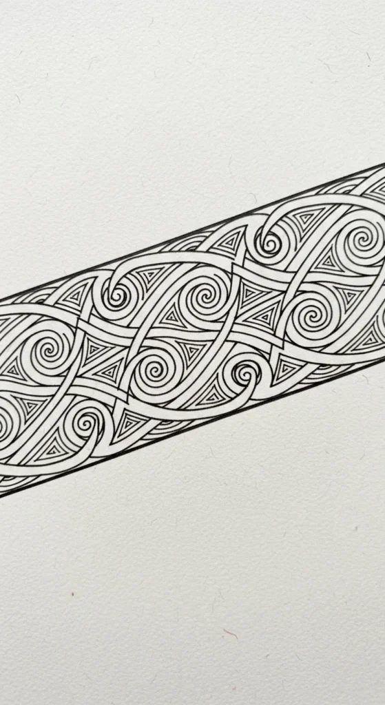 A band tattoo wraps nicely around the arm or wrist. To keep the design simple, draw one repeating wave pattern. Avoid dense detail. Print a strip and tape it around your wrist to test fit. A thin band takes less time and keeps your budget comfortable. For a temporary version, use a fine brush pen and follow the printed guide.