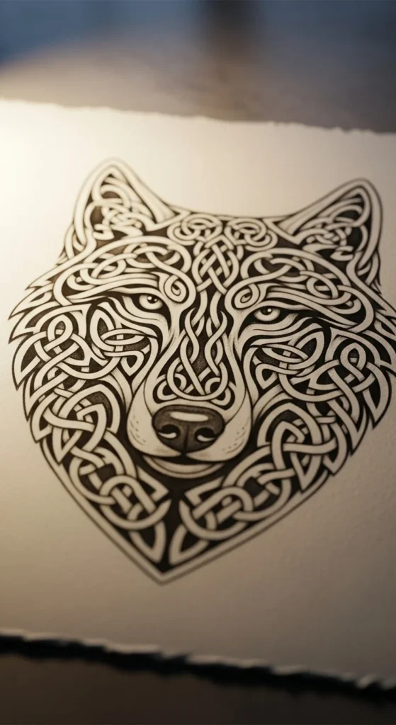 A wolf can express loyalty and inner strength. The design can get complex, so keep it simple if you want to control cost. Try sketching the outline of a wolf head, then add only a few knot-style lines inside. Keep the shapes open rather than filled. For a DIY temporary design, use a thin brush pen and follow your printed outline. This helps you adjust size before meeting your artist.