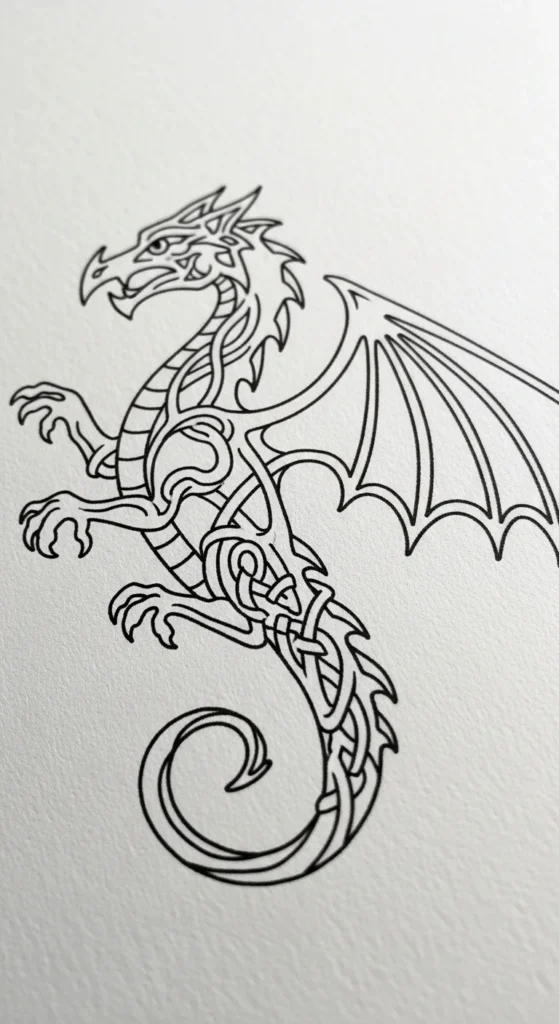 Dragons appear in many Irish stories. They look striking on the forearm or calf. To reduce complexity, draw a curved dragon body with only a few knot accents. Skip dense shading. For a trial version, cut a stencil from a plastic folder and trace it on your skin with a cosmetic marker. This lets you refine placement before committing.