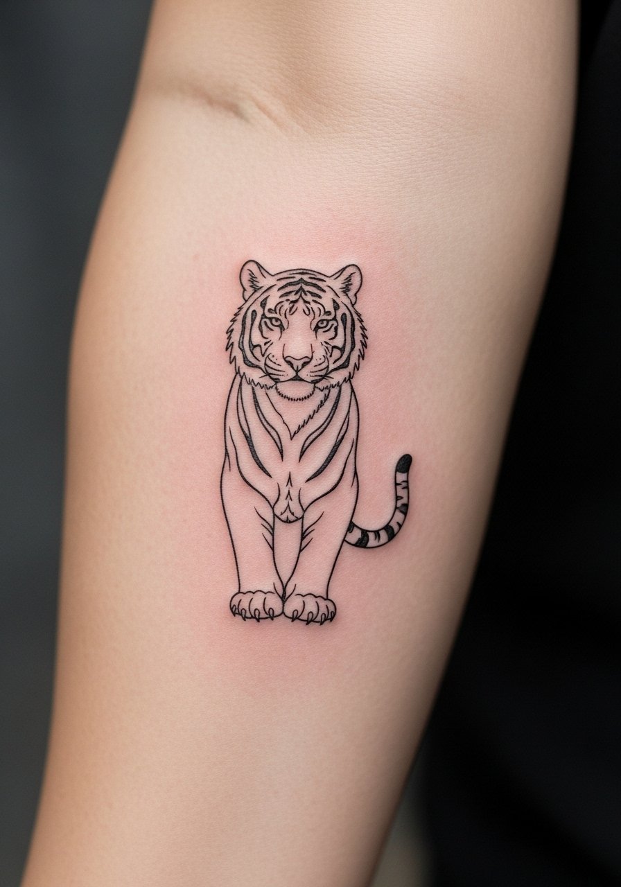 Someone I know got a tiny fine line tiger on their forearm because they wanted courage in a small space. Fair warning: forearm movement and summer sweat speed up peeling, so expect light softening by year two. Tell your artist you want slightly bolder contour lines and a touch of stipple shading for texture. A common mistake is asking for hairline strokes that sit too shallow. Session feels moderate, about one hour. Touch-up at year two keeps the stripes crisp. Ask to see healed photos on similar skin tones before booking.