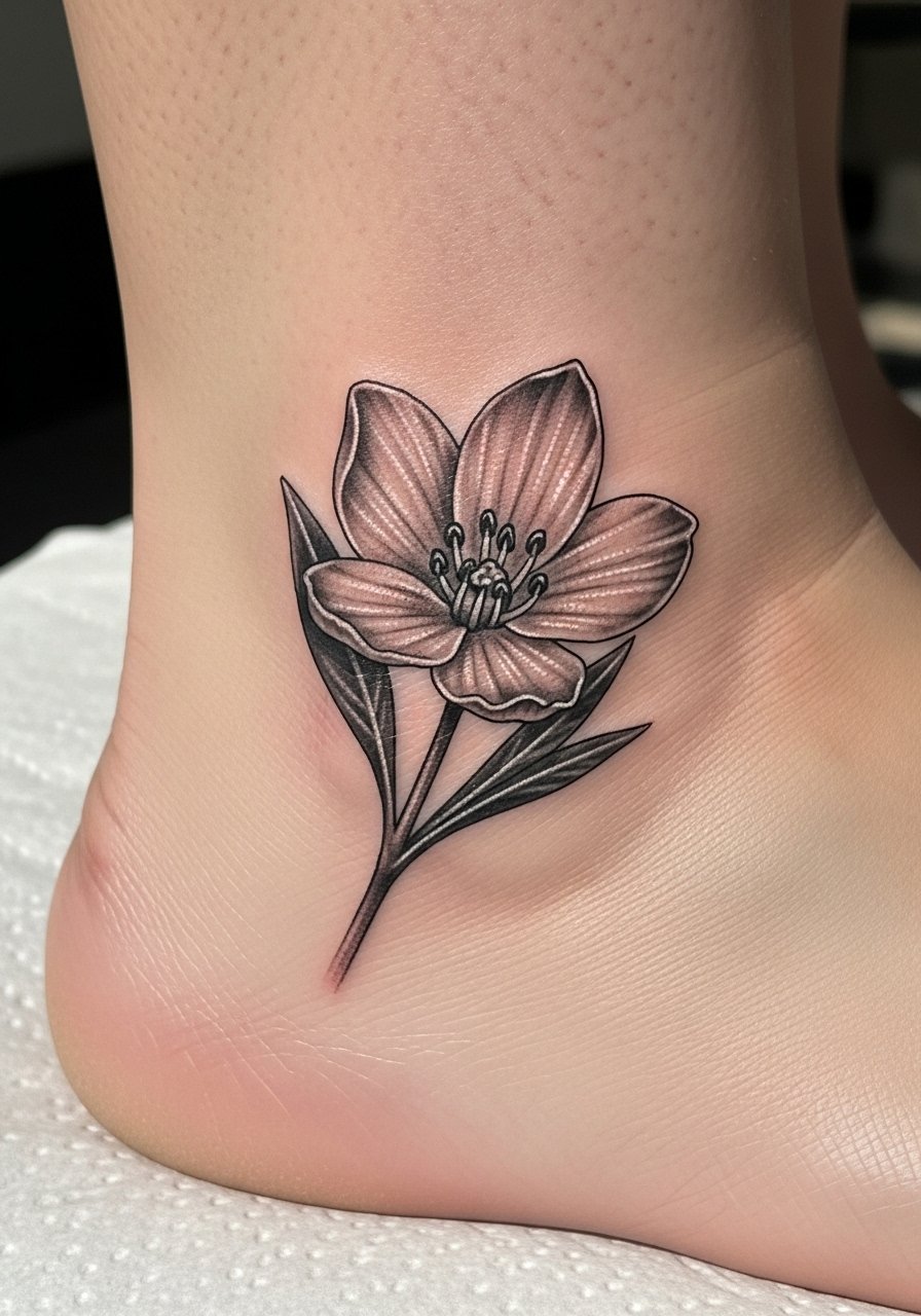 Most micro-realism pieces show beautifully in photos but demand careful placement. The ankle is a risky spot because fine shading can blur if you go too small. Tell your artist you want a two-inch bloom with slightly higher contrast and defined edges. Expect a tight, tingly session that finishes faster than a sleeve. The biggest mistake is asking for full photorealism at coin-size. At six months the petals look soft, at two years expect some feathering, and a precise touch-up can restore the crispness.