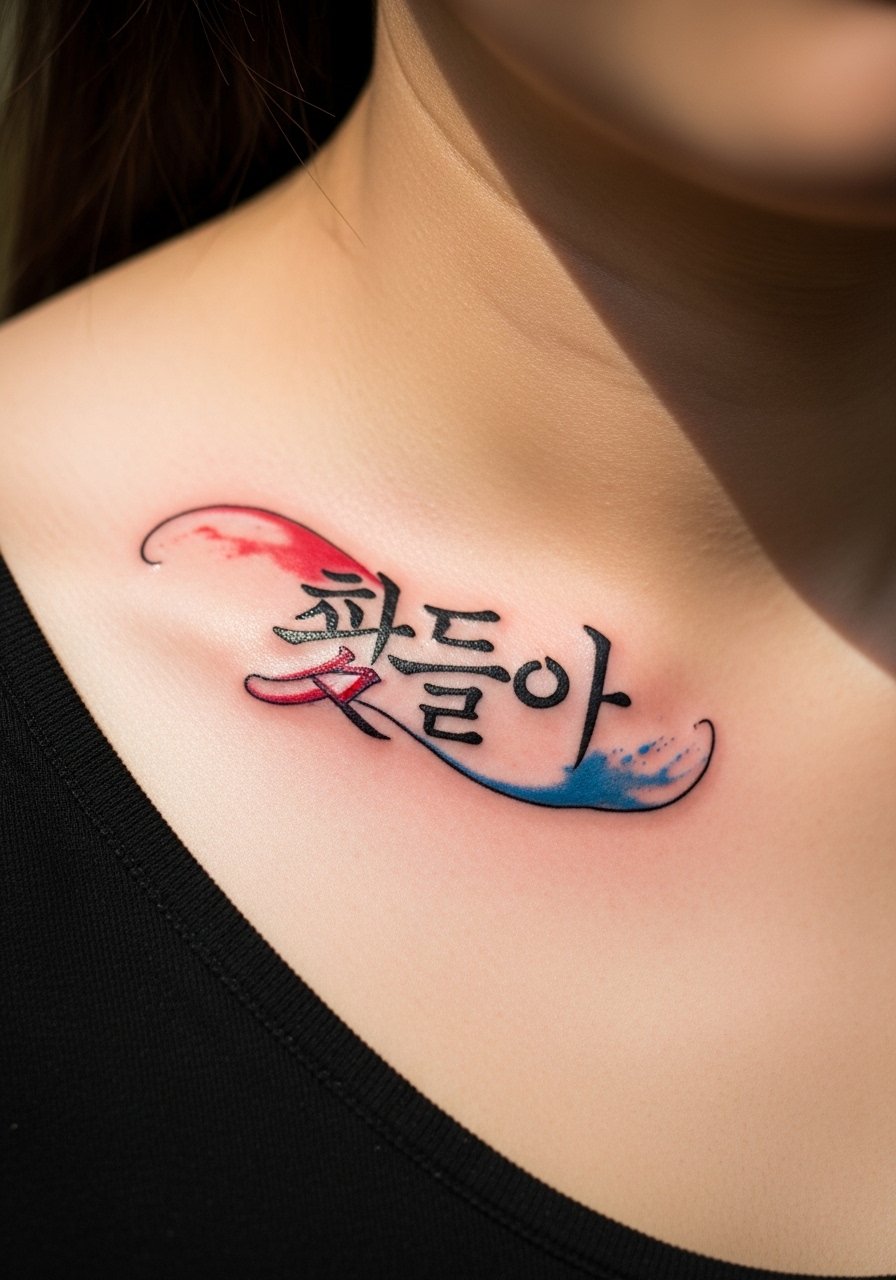 When you pick a Hangeul phrase, verify the wording with a native speaker before the stencil goes down. There is a fine line controversy with calligraphy fans who prefer ghosted blur and artists who want crisp strokes. Name both camps and ask the artist where they land. Watercolor blends can look ethereal at first and then soften into a wash after a year. For beginners, keep the phrase at 3 to 4 inches so letters do not compact. Pain is mild on the collarbone but watch for sun exposure during healing.