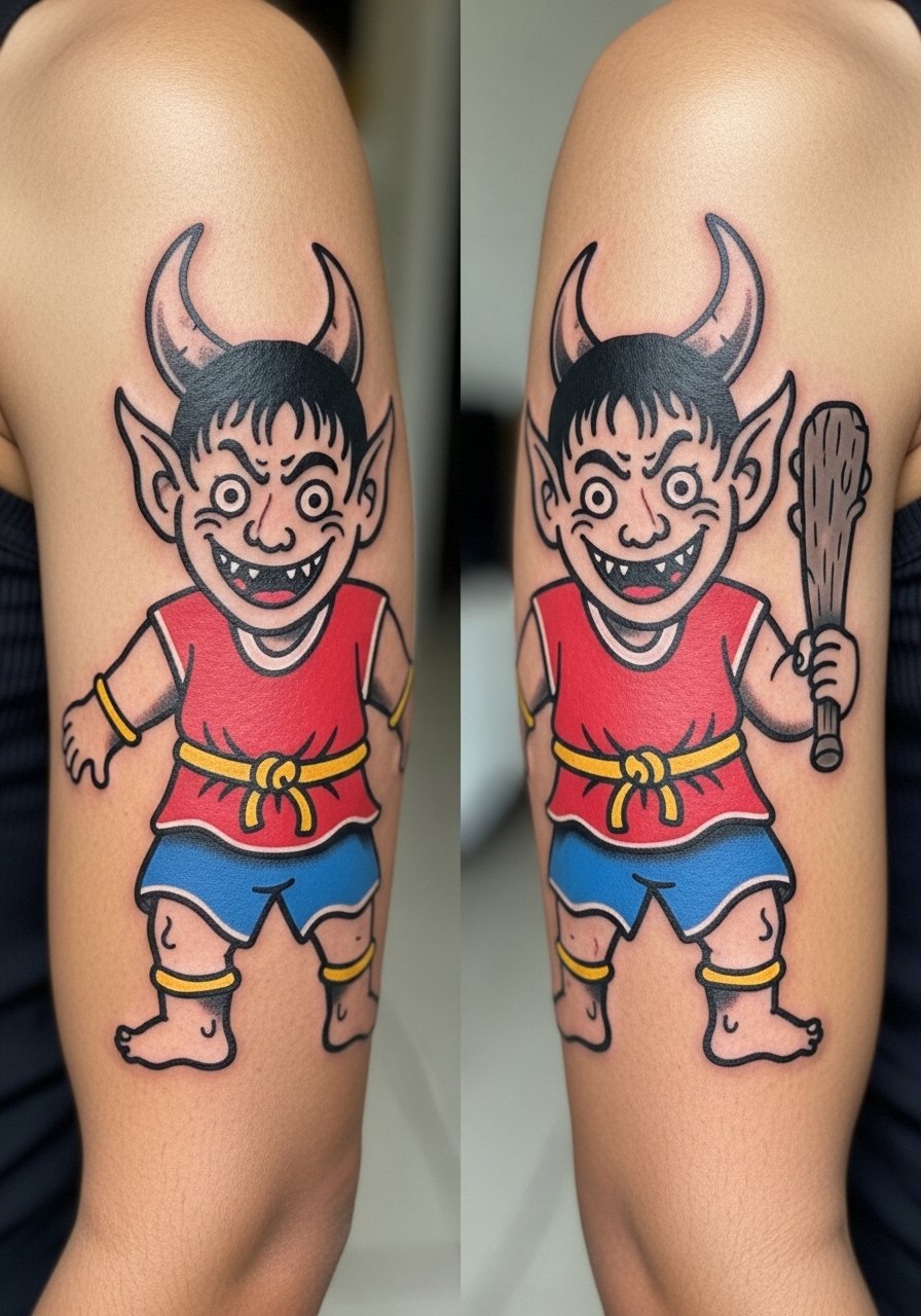 The bicep is forgiving for someone trying bold, raw street-art energy. For Dokkaebi mischief, ask for clean negative space so the face reads in photos. Expect a two-session plan if you want solid fill and crisp negatives. A common mistake is overcomplicating facial features at small size, which loses the character. Pain is low to moderate and saturation holds well on the bicep. If hiring a guest artist, confirm cancellation policies and deposit rules since I have seen guest spots canceled last minute.