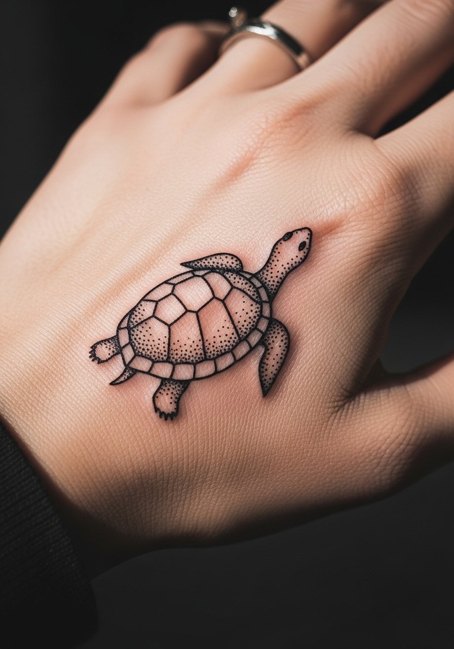 14. Turtle-snake myth in finger dotwork behind the thumb