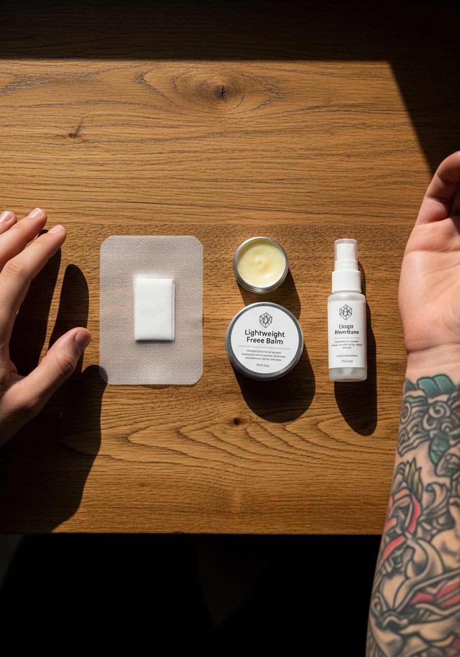 - Japanese Tegaderm alternative clear film dressing. Breathable film that artists mention for humid climates, useful on rib and back pieces where movement is constant.