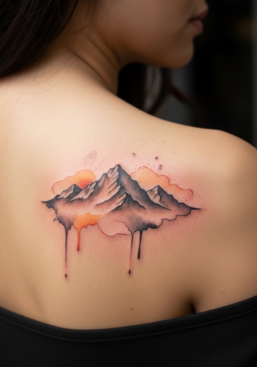 Watercolor gives mountains a dreamy, liberated feeling—perfect when paired with a sunrise or gradient sky. The shoulder blade is great because it’s flat and hides under clothing easily. Pain is manageable; it’s one of the calmer spots. Color fades faster than black, so expect touch-ups in years if you want vivid saturation forever. From what I’ve seen, artists who specialize in color layering produce the most natural healed results. Common mistake: using fluorescent pigments or tiny splatter areas that heal patchy. Ask to see healed color work on your skin tone.