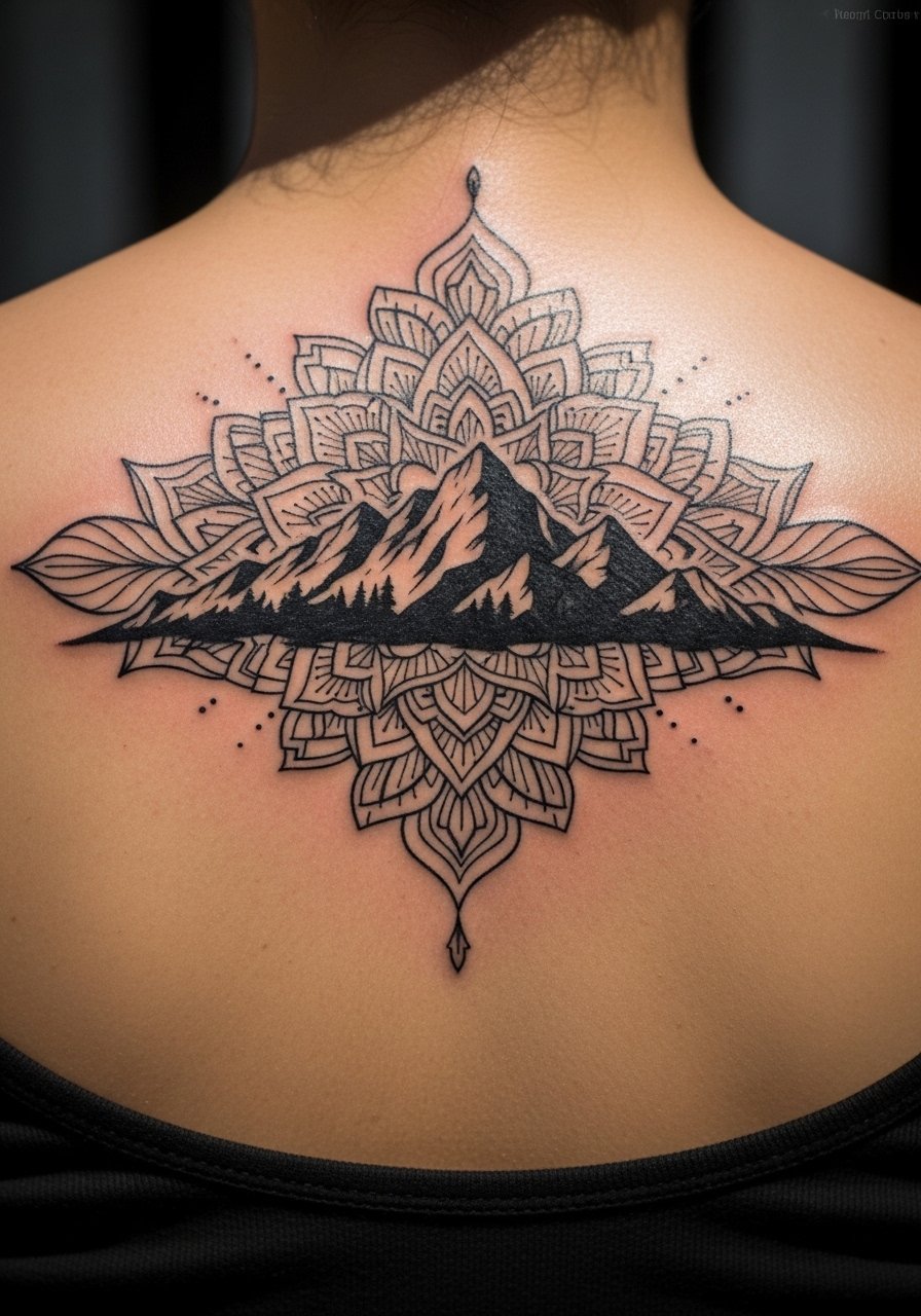Combining mountains with a mandala on the upper back creates a meditative, grounded focal point. The back tolerates longer sessions and holds detail well. Blackwork mandalas age gracefully thanks to solid lines; keep inner mandala elements balanced to avoid visual clutter. Avoid very thin radial lines that can blur—ask for bold radial anchors. I like seeing healed 1+ year mandalas to understand how fine details soften.