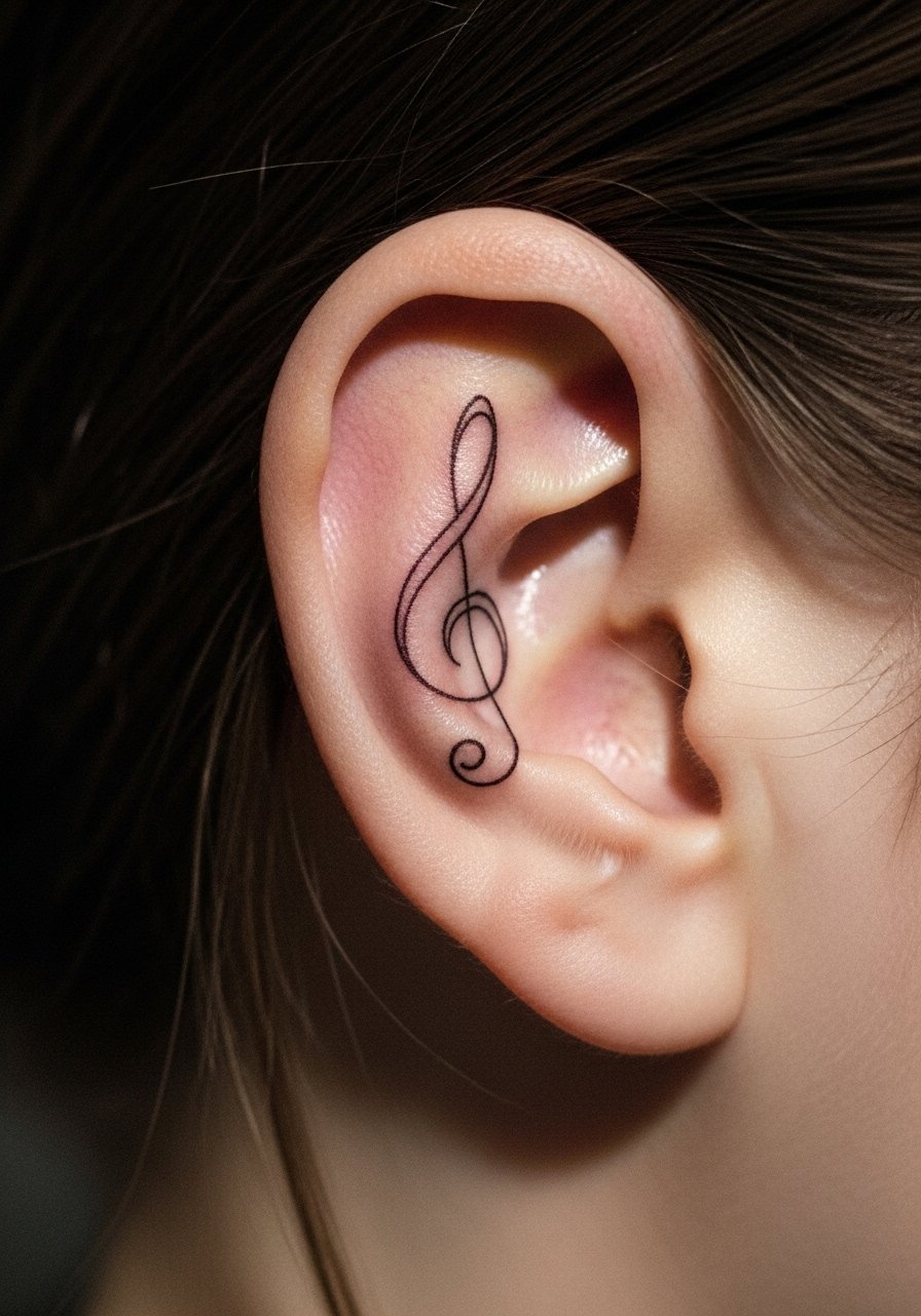 I love this for first-timers who want meaningful music tattoos without commitment. Healed fine lines can blur on very soft skin, so ask for slightly bolder line weight. Behind the ear is quick but packs a sting—short heal, minimal peeling. Common mistake: ultra-thin lines that vanish after a year. Ask an artist who does healed-skin examples for similar placements.
