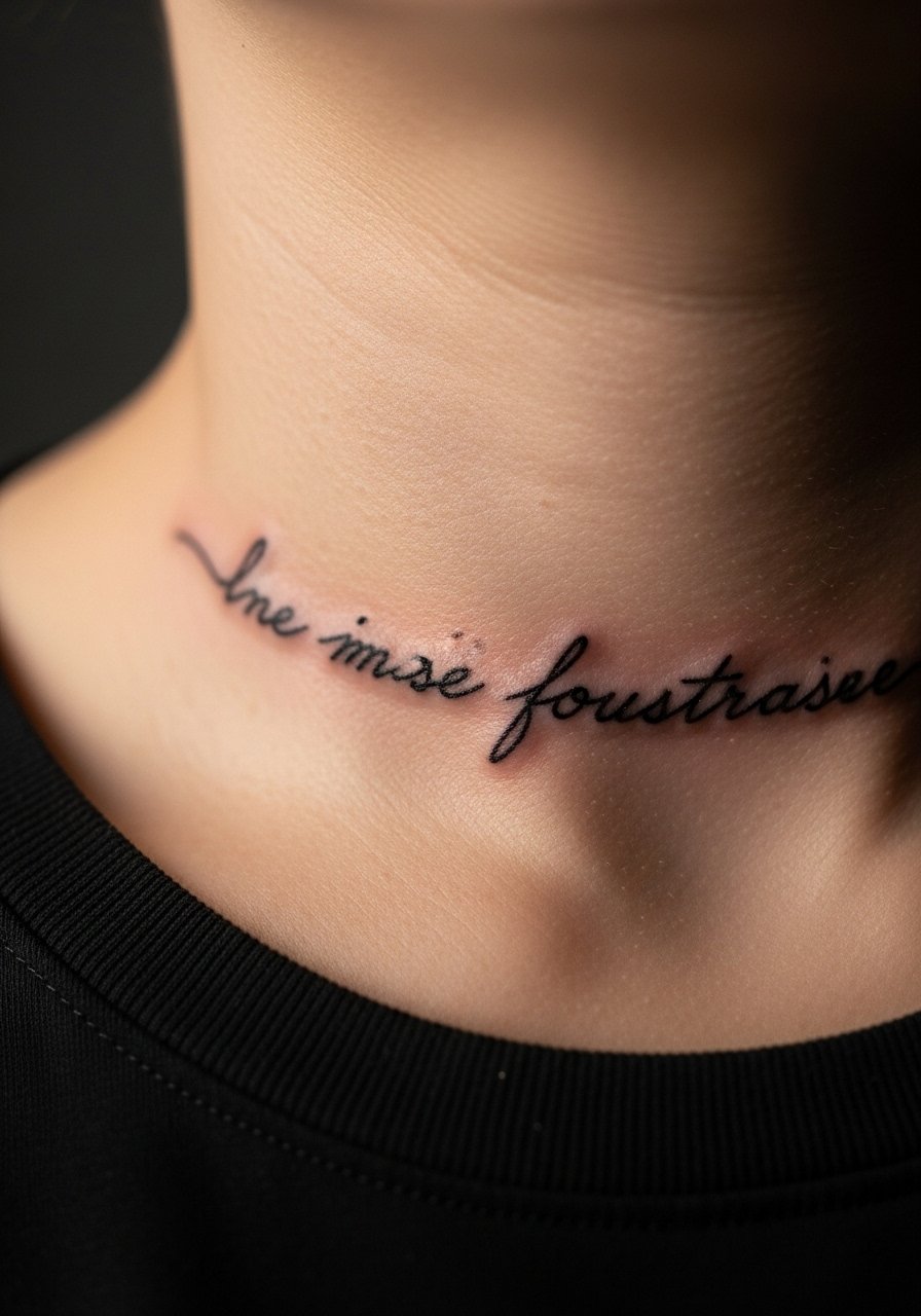 Collarbones show lyrics beautifully but can be picky—skin tension lines can distort script. Single-needle looks delicate but may blur; choose a slightly bolder script. Pain is a sharp burn near the bone. Hydration and gentle cleansing speed surface healing.