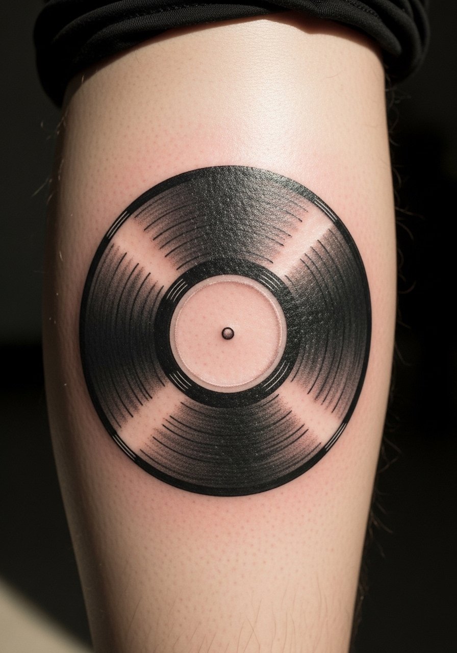 Calf skin holds texture well and heals with minimal movement. Vinyl grooves require subtle shading—avoid over-detailing that blurs into a gray blob. Healed records look softer than fresh, so ask for slightly higher contrast initially.