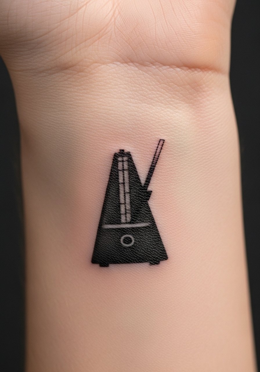 Wrist metronomes are symbolic and easy to show. The wrist moves and gets sun—use stronger lines and protect with sunscreen to retain contrast. Pain is a constant tingle near the tendons.