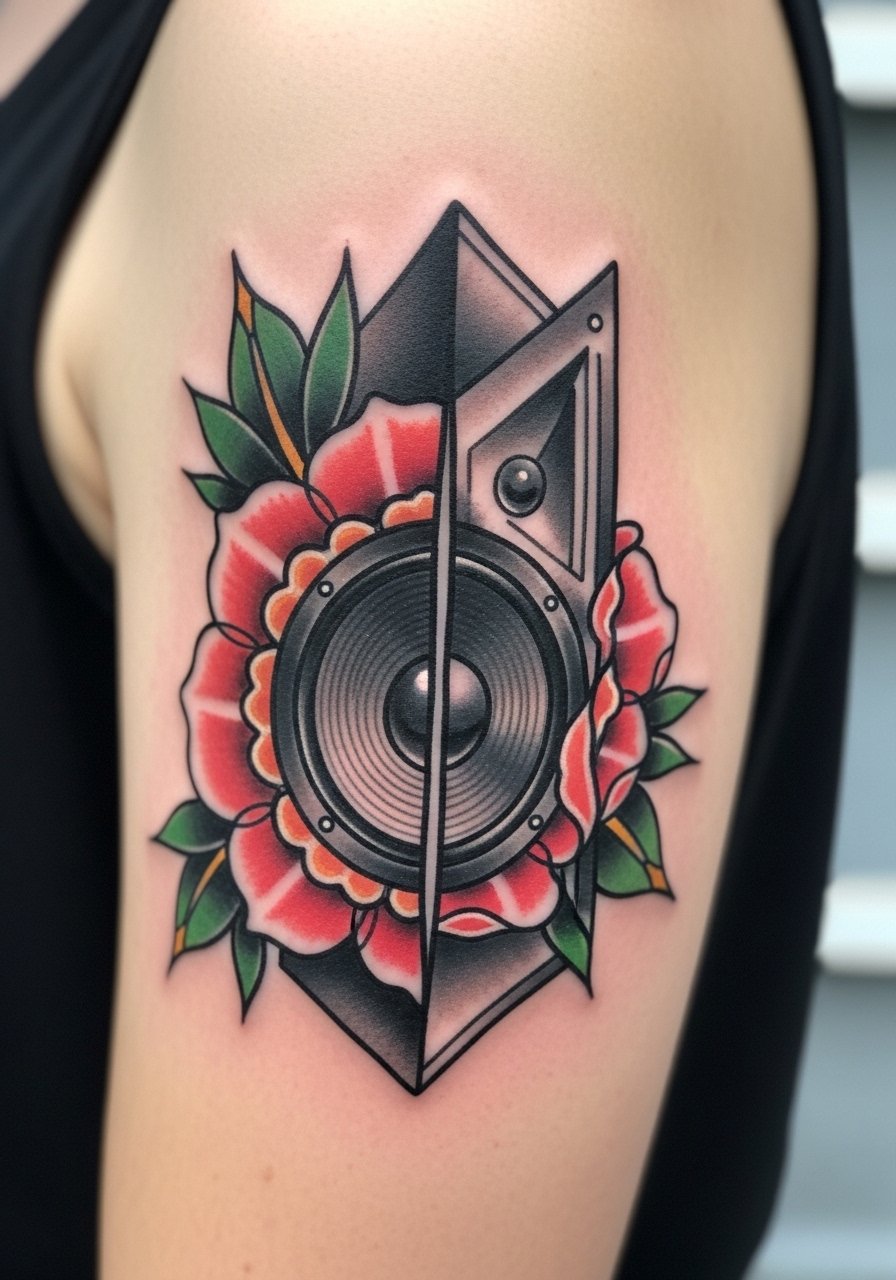 Blending music elements with florals feels fresh—soundflowers are an under-covered angle that reads well as sleeves. Upper arm skin keeps color. Ask for healed examples of color transitions on similar skin tones.