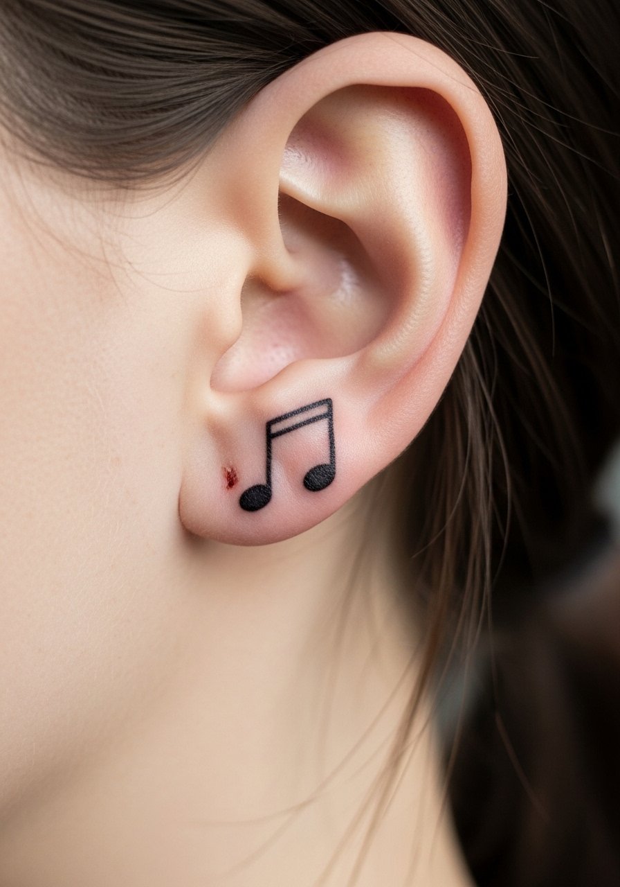 Small notes behind the lobe are quick and intimate. They heal fast but can fade if frequently exposed to sun and hair products—cover during the first week and keep them moisturized.