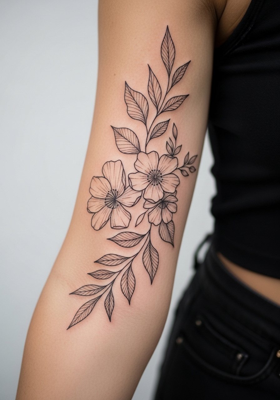1. Fine Line Botanical Sleeve on Inner Forearm