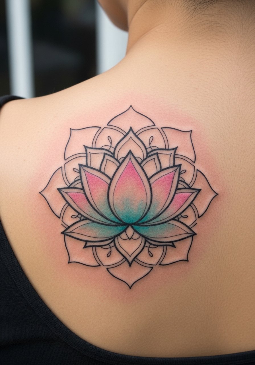 A watercolor flower mandala on the shoulder blade feels like a portable piece of landscape art. The shoulder tolerates color well and allows the painterly gradients to flow without constant rubbing from clothing. Expect a comfortable session and a few weeks of surface healing where colors look muted until the skin regenerates. Watercolor techniques can age differently—soft hues often need touch-ups years later, so focus on saturation in the consult. A common mistake is asking for overly fine watercolor splashes without enough black anchor lines; those pops vanish sooner. Ask for artists who mix watercolor with defined neo-traditional elements so your piece has longevity.